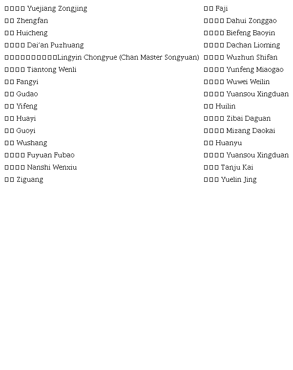 Zhang’s Jingshan Annals entirely disapproved of the practice of setting the Ancestors as the first volume in Song Kuiguang’s Jingshan Annals. He mentioned in General Examples that: