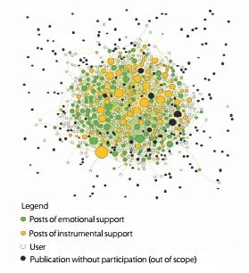 Another point to be highlighted concerns the method of Social Network Analysis and its potential to diagnose the articulation of social support through socio-technical networks. The method of extraction and visualization of micro-data on the behavior of users allows mapping micro-regulations, micro-negotiations and everyday actions among members of certain social groups that have specific interests and demands for information. This methodological perspective of research suggests a new epistemological view of the field of social phenomena studied, to the extent that it can reveal a reality of production, dissemination and use of information through the Internet - and points to the contexts in which users tend to be passive or active, and the conditions of possibility to the production of credibility and informational relevance in networks.