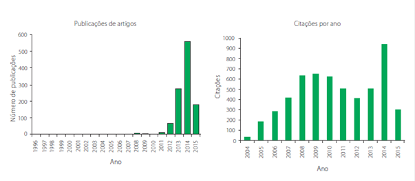 Observando a Figura 1, pode-se notar que a busca realizada no ISI Web of Science trouxe principalmente artigos dos últimos quatro anos, cujas curvas denotam rápido crescimento no número de publicações.
