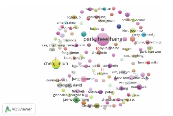 O cluster 7 corresponde ao de maior magnitude, como pode ser visto na Figura 3. Isso significa que os autores que compõem tal cluster (principalmente Chen) são bastante ativos em big data analytics e são os que mais publicam a respeito do tema. As publicações consideradas nesse cluster abordam assuntos da ciência da computação relativos ao processamento e armazenamento de big data, cujos periódicos mais comuns alvo de publicação correspondem ao IEEE Transactions on Parallel and Distributed Systems (fator de impacto 2.173), da IEEE Computer Society, e o Journal of Computer and System Sciences (fator de impacto 1.091).