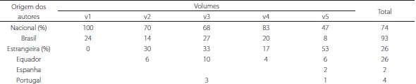 A prática desejada pelas agências indexadoras é que os periódicos tenham a maior quantidade possível de artigos publicados com a colaboração de autores estrangeiros, definindo, por exemplo, percentuais mínimos desejados, de acordo com a área do conhecimento, como o caso da Scientific Electronic Library Online (2014). Conforme os dados da Tabela 1, o periódico apresenta algum avanço nesse sentido, ao ter alcançado 30% e 33% nos volumes 2 e 3, respectivamente, sofrendo uma redução no volume 4, e alçando um valor mais significativo no quinto (53%). Ressalva-se, como ponto de alerta, a concentração de material de pesquisadores de universidades equatorianas, cujos artigos - em comparação aos demais publicados no periódico -, contam com um maior número de coautorias. O aumento da dispersão geográfica dos autores é um indicador da capacidade do periódico em captar artigos de distintas comunidades de pesquisadores, o que é fundamental para o reconhecimento da qualidade do veículo de publicação (Packer; Meneghini, 2006).