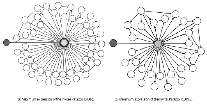 Our study tested two hypotheses that apply to members who receive and/or send invitations for the formation of academic committees: “The Invitee Paradox” (Friendship Paradox in terms of who is invited); and “The Inviter Paradox” (Friendship Paradox in terms of who is extending the invitation).