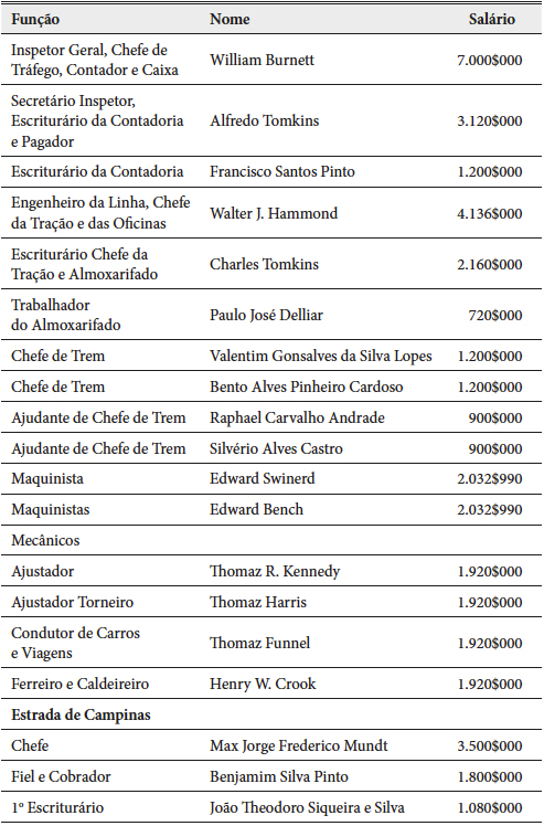 Em 1869, a Paulista era presidida por um engenheiro, o senhor Clemente Falcão de Souza Filho e tinha um quadro de funcionários bastante restrito. Na secretaria e contabilidade cinco funcionários (secretário a porteiro). O corpo técnico contava com um engenheiro chefe, sete ajudantes, um desenhista e um amauense. Em 1872, com o início do funcionamento a Paulista constitui o primeiro quadro de empregados ferroviários. Eram quarenta e cinco funcionários.