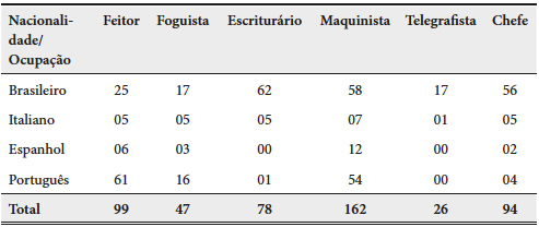 A análise dos prontuários dos trabalhadores da CPEF nos permite afirmar que parcela substantiva dos empregados da empresa eram nacionais e também indicam que para nenhuma das atividades profissionais registradas, em seus diversos níveis, há a possibilidade de associar função e nacionalidade. As estratégias de constituição do mundo do trabalho livre foram múltiplas. O argumento de uma suposta qualificação da mão de obra imigrante superior à dos trabalhadores nacionais livres, pobres e ex-escravos não parece encontrar, neste caso, suporte empírico.