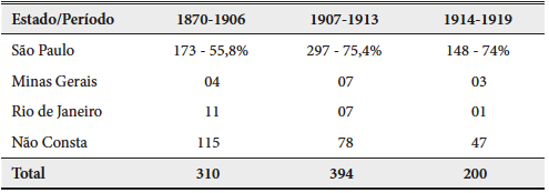 A grande imigração, sobretudo de italianos, portugueses e espanhóis, significou a introdução de pouco mais de um milhão de novos trabalhadores no Brasil entre finais do século XIX e primeiras décadas do século XX. A imensa maioria destes estrangeiros concentraram-se no estado de São Paulo e subsidiariamente nos estados de Minas Gerais e Rio de Janeiro (Trento, 1989; Halpern, 2002; Klein, 1994). Este crescimento demográfico associado ao final da escravidão e aos debates acerca da constituição da nação contribuíram para que parte expressiva da bibliografia associasse industrialização, urbanização e mão de obra estrangeira (Lanna, 1996).