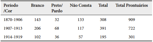 Na organização dos 1900 processos funcionais, as fés-de-ofício, dividimos o período da pesquisa - 1870/1920 - em três momentos. Um que vai do início dos registros até o ano de 1906, data de uma importante greve que mobilizou significativamente os funcionários da CPEF, justificando a demissão de muitos e a promoção de outros. Do ponto de vista das transformações urbanas este é, em geral, momento significativo no que diz respeito às reformas de saneamento e das formas de morar, e também corresponde ao movimento de expansão da Paulista para as cidades da região cafeeira. O segundo período vai de 1907 a 1913. O terceiro - 1914 a 1919 - é marcado pela questão da I Guerra Mundial, do crescimento das organizações operárias e da "profissionalização" dos quadros da Companhia Paulista.