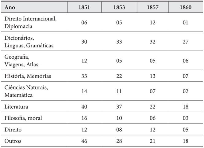 Ao considerarmos os domínios de saber mais vendidos pela casa Rey e Belhatte em seus catálogos (tabela 2), notaremos a importância conferida à literatura como uma das áreas mais investidas pela livraria.