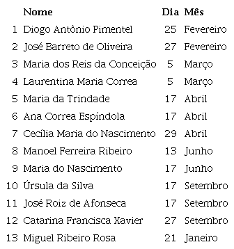 O rol descrito foi assinado pelo secretário da Ordem a 28 de agosto de 1760, e elaborado a pedido da mesma. Além dos treze nomes identificados, o irmão secretário declarou que Feliciano da Gaia, natural da aldeia de Uná, “foi admitido e não recebeu ainda o santo hábito por se achar fora da terra”. No período descrito, dois candidatos descendentes de índios não tinham sido aceitos: Antônia Maria do Nazaré e Pedro Joaquim de Alcântara, em ambos os casos por falta de bens para satisfazer as despesas da associação. Por fim, o secretário da Ordem atestou que havia candidatos que não foram aceitos “por mal procedidos e outros com Infesta Nação [sic] como constam dos mais assentos feitos pelos Reverendos Padres Comissários Visitadores, pois é livro que se acha em seu poder e não na secretaria da Ordem”.18 A última informação mostra com toda a clareza que apenas os impedimentos associados ao sangue indígena haviam sido abolidos para o ingresso na Ordem Terceira, permanecendo de pé as restrições aplicadas às demais “raças” proibidas, conforme já argumentado. O próprio Diretório dos índios procurou afastar dos nativos americanos a infâmia associada aos descendentes de africanos: