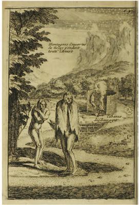 En el caso de las observaciones e imágenes proporcionadas por Froger respecto de los indígenas hallados en las proximidades del estrecho de Magallanes, si bien desde el relato inaugural de Antonio Pigafetta (1526) la referencia a los “patagones” es un tópico recurrente en los viajes a los confines de la América meridional, el grabado que acompaña la descripción (Figura 2) es diferente de las imágenes elaboradas previamente, caracterizadas por el gran tamaño de los sujetos ilustrados. En este sentido, la imagen que propone Froger (1698) constituye un aporte original que evidencia el grado de autonomía logrado por el viajero- autor respecto de un repertorio iconográfico previo. Ahora bien, si por un lado la ilustración propuesta de las poblaciones magallánicofueguinas se distancia de las imágenes más generalizadas producidas por los grabadores y cartógrafos holandeses en el siglo XVII (MARTÍNEZ, 2020), las observaciones hechas por el francés se enmarcan en las recurrentes discusiones a favor o en contra de su excepcional tamaño. Frente al topos de los “gigantes patagones”, Froger (1698, p. 98) acusa a “algunos autores” de haber exagerado y explica: “nos parecieron muy sobrios y el más alto de entre ellos no tenía más que seis pies”.25 El francés se distancia del mito de los gigantes pero, a la vez, no deja de observar a las poblaciones patagónico-fueguinas en función de un debate que se mantendrá vigente hasta fines del siglo XVIII (DAVIES, 2016, p. 148-182).26