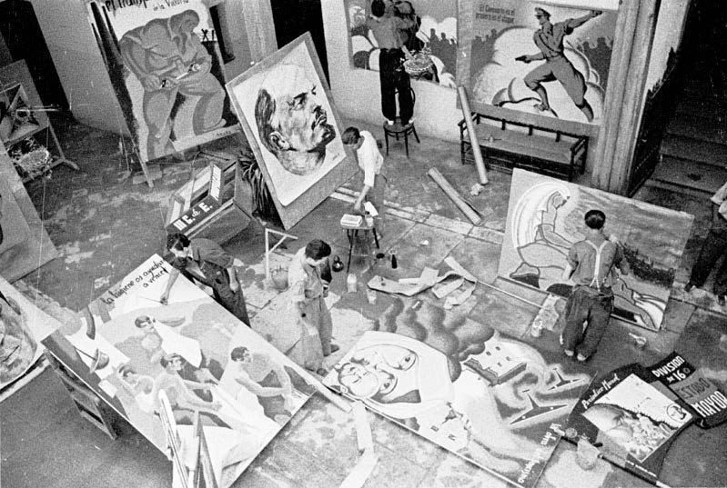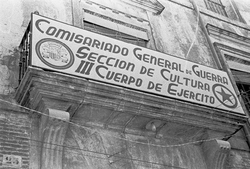 En el seno de organizaciones sindicales, asociaciones artísticas o revistas, muchas nacidas durante la contienda, los artistas desarrollaron una importante labor de propaganda cultural que también se desplegó desde los sectores oficiales, tales como la Sección de Propaganda del Ministerio de Instrucción Pública. De hecho, este Ministerio desplegó una intensa actividad que tuvo como punto álgido la organización del Pabellón Español de la Exposición Internacional de París de 1937 ( BRIHUEGA, 2002, p. 25).