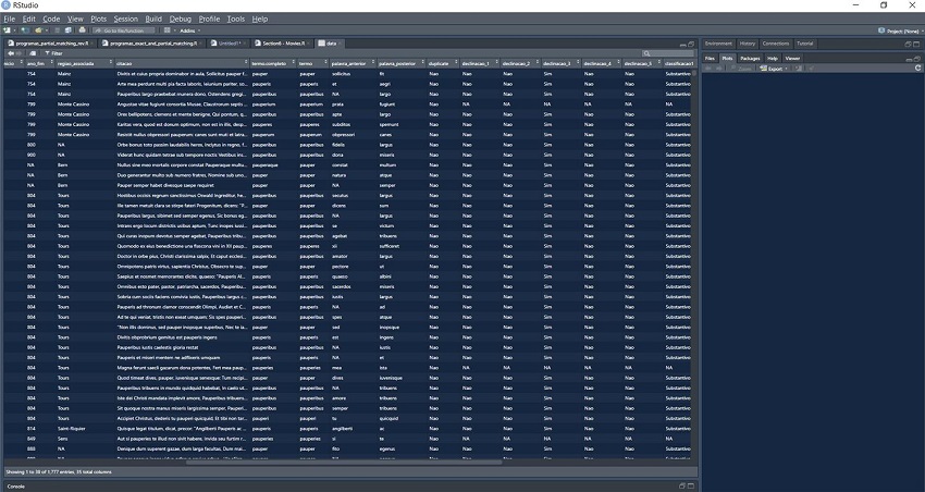 Para realizar esses objetivos, elaboramos um banco de dados sobre o léxico da pobreza na Alta Idade Média, que teve, como resultado derivado, a criação de novas formas de explorar a documentação. Levou-se em conta as tecnologias informáticas, como a elaboração de programas de computador para a leitura e a extração de dados em grande quantidade, além de sua preparação para visualizações em conjunto, justamente os pontos que abordaremos neste artigo.