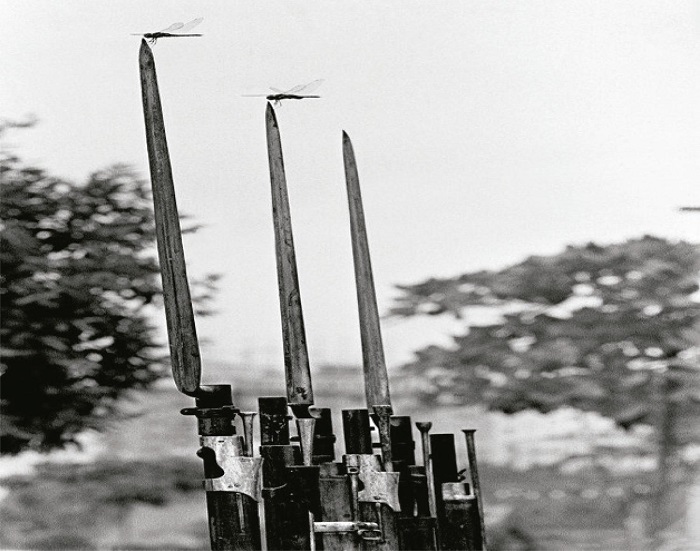 Em 21 de maio de 1966, durante o governo do marechal Humberto Castello Branco, montou-se uma exposição com as armas e munições usadas na Guerra do Paraguai, apresentada no Monumento aos Mortos da Segunda Guerra, no Rio de Janeiro. O fotojornalista Evandro Teixeira fez a fotografia das libélulas posando sobre as baionetas em exposição: