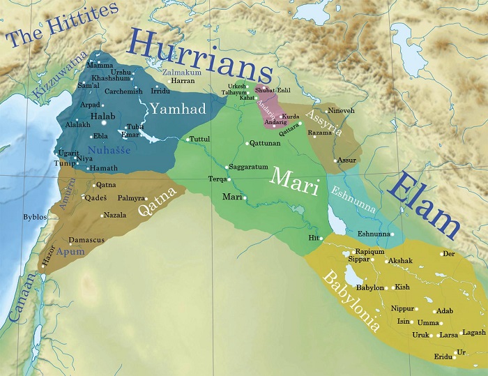 Nessa época em que reis do noroeste faziam alianças a fim de aumentar o controle sobre governantes vassalos e anexar localidades do seu limite de influência, duas cidades-Estado desequilibravam a formação dos blocos geopolíticos: Qatna e Alepo. Correspondências dos ARM atestam o poder político das cidades sírias na formação de blocos: