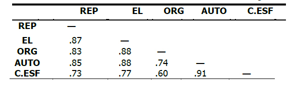 En la Tabla 4 se presentan los valores del coeficiente alfa de Cronbach para cada una de las subescalas objeto de estudio.