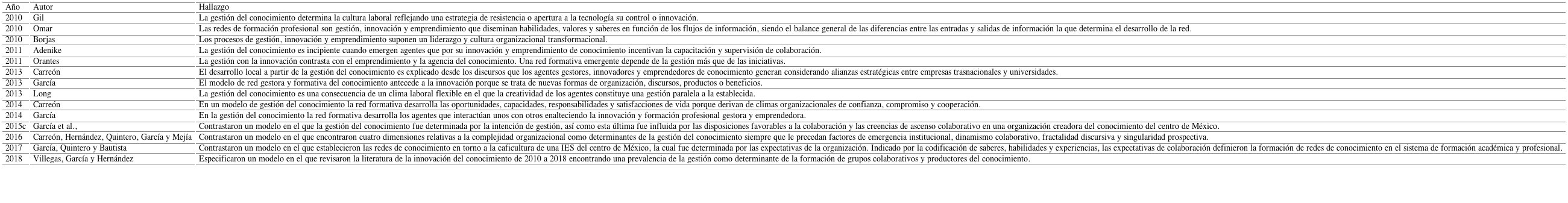 Las relaciones teóricas entre los indicadores de gestión del conocimiento se ajustan a los datos observados en la muestra de estudio en el contexto de una red de conocimiento entre una universidad pública y sucursales o puntos de venta de automotrices multinacionales (García et al., 2015b).