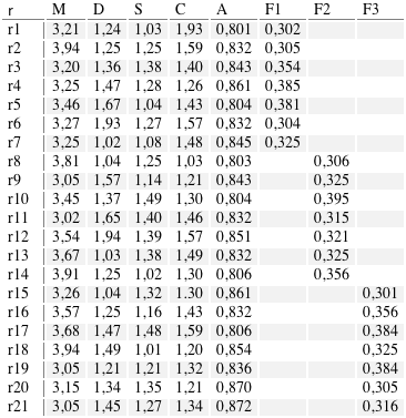 Es posible observar que la consistencia interna de la escala general (alfa de 0,888) y de las subescalas (alfas de 0,890; 0,880 y 0,870) los cuales explicaron hasta el 54% de la varianza total explicada, indicado la inclusión de otros factores que la literatura identifica como empatía, compromiso, emprendimiento, innovación y satisfacción.