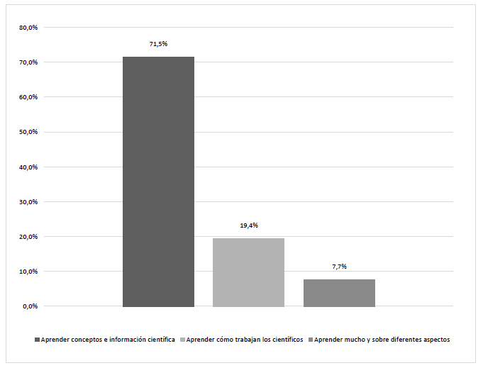 Las respuestas de los niños nos permiten hipotetizar acerca de que los mismos han configurado las propuestas del Ciclo Café Científico como un contexto de aprendizaje. De 144 encuestados, 142 mencionaron haber aprendido sobre diferentes aspectos, entre ellos se destacan:
