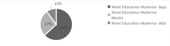 En referencia al nivel de escolarización de las madres6 de este grupo de jóvenes se encuentra que la mitad reviste un nivel educativo bajo7, en donde la mayoría no ha alcanzado a terminar la escuela secundaria. Sólo el 28% cuenta con un nivel educativo alto habiendo transitado por el nivel superior.