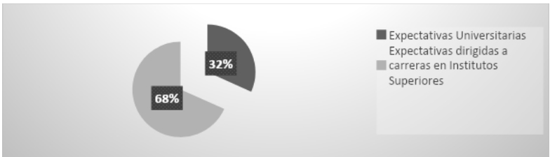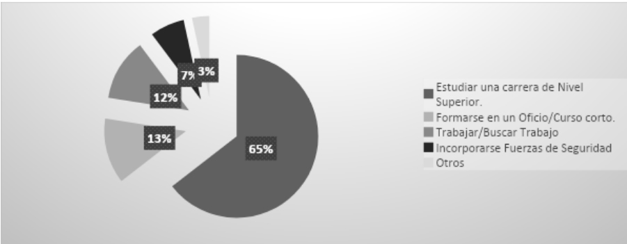 Durante el último año de la secundaria las y los jóvenes escolarizados comienzan a reflexionar y delimitar sus expectativas en relación a la continuidad de estudios postsecundarios y/o propuestas de inserción laboral. Podría decirse que se ciñen a la elección de un plan certero y realista, dejando de lado opciones que no son viables (Filmus, Kaplan, Miranda y Moragues, 2001).