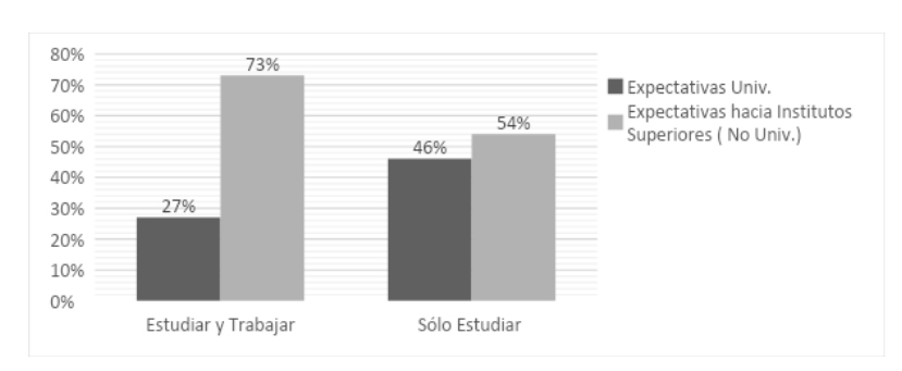 En diversas investigaciones nacionales, tienen un lugar central las expectativas que combinan intenciones de trabajar y estudiar en los sectores medios y medios-bajos durante la escolaridad secundaria y luego de haber egresado del nivel. Aquí el trabajo no constituye un fin en sí mismo, sino una condición complementaria para sostener diversos proyectos educativos (Dubois, 2010).