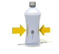 Ítem 11.-A los estudiantes se les muestra una botella tapada con agua (ver la figura de abajo) Dentro de la botella hay un cuentagotas o gotero que flota justo debajo de la superficie. El cuentagotas está parcialmente lleno de agua y parcialmente lleno de aire. Cuando se aprieta la botella de agua, el cuentagotas se hunde hasta el fondo, pero no gira. Cuando la botella se libera, el cuentagotas flota en la parte superior. El agua no cambia significativamente su volumen bajo presión, pero el aire sí lo hace. ¿Qué explica que el cuentagotas que se hunda y flote?