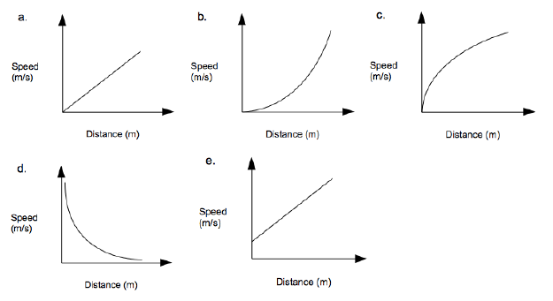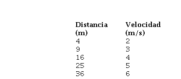 Ítem 15.-¿Qué representación gráfica muestra mejor la relación entre la velocidad y la distancia recorrida del siguiente conjunto de datos?
