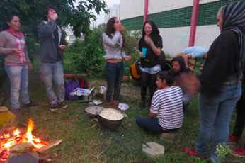 Um modo concreto de levar as e os licenciandos ao discernimento da escola como produto e reprodutora da cultura, na hierarquização de saberes, na formalidade dos tempos-espaços e da arquitetura da escola, ainda bastante apartada da natureza foi promover uma sala de aula ao ar livre, todo mês, em dia de lua cheia, com fogueira no pátio da escola. Foi chamada de “sala 12”, onde ocorria a “jam da lua cheia”, após a oficina de instrumento escalada para o dia.