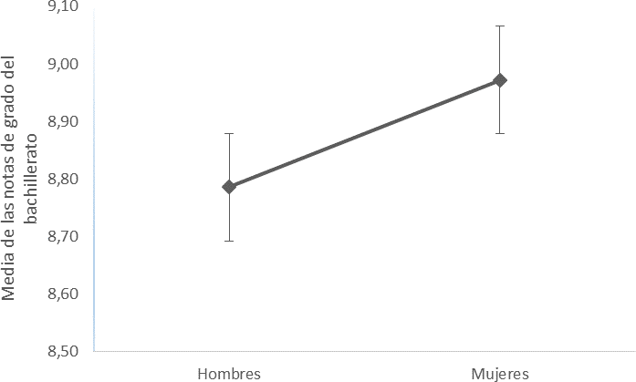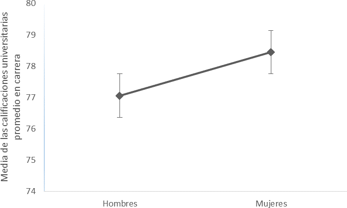 Pese a que los hombres muestran un mayor nivel del proceso cognitivo básico de RA, las mujeres muestran mayor nivel de rendimiento académico (calificaciones o notas) en el bachillerato y en las calificaciones disciplinares en la Universidad. Pudiera parecer que las mujeres son más dedicadas en este caso en estas dos áreas de conocimiento y que, por ello, obtuvieran obviamente mejor rendimiento. No obstante, no se muestra ninguna diferencia significativa en la prueba nacional de la SENESCYT. Pareciera que, para esta prueba, el nivel de preparación empuja a todos los alumnos, independientemente del género, a prepararse en el examen para tener un rendimiento similar.