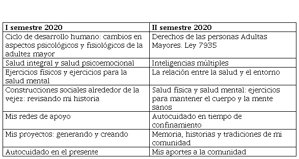 Palabras clave: adultez mayor, comunidad, salud emocional, sistematización de experiencias, virtualidad.