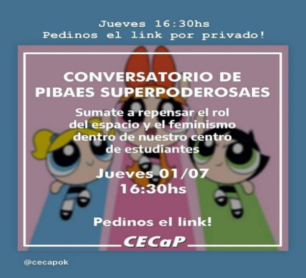 En segundo lugar, el CE de la Institución B es uno de los CE con mayores índices de politización por la densidad de su actividad y estabilidad desde el retorno de la democracia y ello se observa también en el relevamiento realizado. Para el año 2020, se registraron 14 prácticas, 4 convocatorias y 3 referencias. Las primeras hacen referencia a actividades ligadas con el entretenimiento (la realización de comisiones con juegos, música y charlas), reuniones formales (por ejemplo, de delegadas/os y comisión directiva), conversatorios sobre la interrupción voluntaria del embarazo y mensajes de repudios contra el accionar estatal18. Las convocatorias hacen referencia principalmente a actividades presenciales como marchas por la defensa del medio ambiente19, donaciones de computadoras y netbooks y movilizaciones por la legalización del aborto. Y las referencias digitales abordaron las efemérides clásicas del MES como el 8 de marzo, el 24 de marzo y el 16 de septiembre.