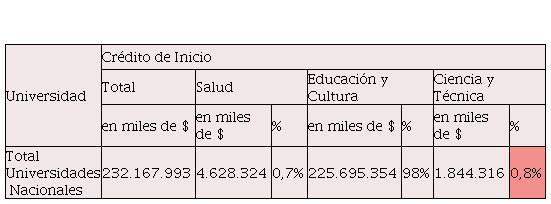 Así, el peso de la cuestión salarial también se expresa en la escasez de recursos orientados para la investigación que, como también se puede apreciar en el cuadro siguiente, para 2021 solo el 0,8 % del presupuesto de las Universidades Nacionales se orientaba a la investigación.