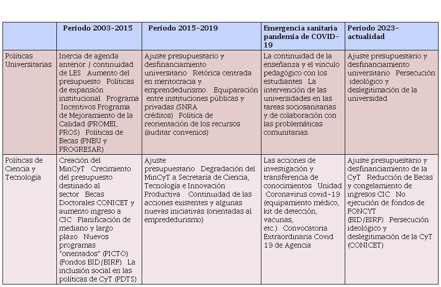 Keywords: university policies, science and technology policies, COVID 19 pandemic, Milei, Argentina.