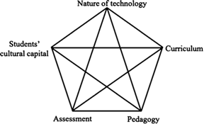 Partimos desde la ubicación de los sujetos presentes y diferenciados en un escenario esquemático como fue el provisto desde la triada didáctica a partir de Houssaye en 1988, luego los trabajos de Mishra y Koehler (2006) dieron cuenta de un modelo, el TPAK (Conocimiento tecnológico, conocimiento pedagógico y conocimiento de contenidos. Dando lugar al conocimiento tecnológico y pedagógico del contenido). Es entonces cuando se actualizó significativamente el proceso integrador de tecnologías al servicio del aprendizaje y la construcción de conocimiento. Este modelo integra lo pedagógico, lo tecnológico, lo didáctico y genera como resultado un nuevo conocimiento que es la integración de estas variantes; no se trata de una sumatoria, sino de la síntesis de conocimientos. Parecía, sin embargo, que faltaba en la articulación algo que diera un sentido cultural y contextual al acto pedagógico. En ese sentido, resaltamos desde este trabajo el aporte cultural que desde otras lógicas frente a las tecnologías educativas se da por ejemplo en la mirada de la tecnología educativa presente en Nueva Zelanda. Desde la Facultad de Educación de la Universidad de Waikato introducen la enseñanza íntegra a la cultura maorí sin segmentaciones, se encuentra incluida de principio a fin. Incluso en lo referido a tecnologías educativas. Buntting, Williams y Jones (2015) van a considerar la naturaleza de la tecnología, del curriculum, de la pedagogía, de la evaluación y del capital cultural de los y las estudiantes. Este esquema sitúa al capital cultural como integrante de uno de los vértices para el análisis.