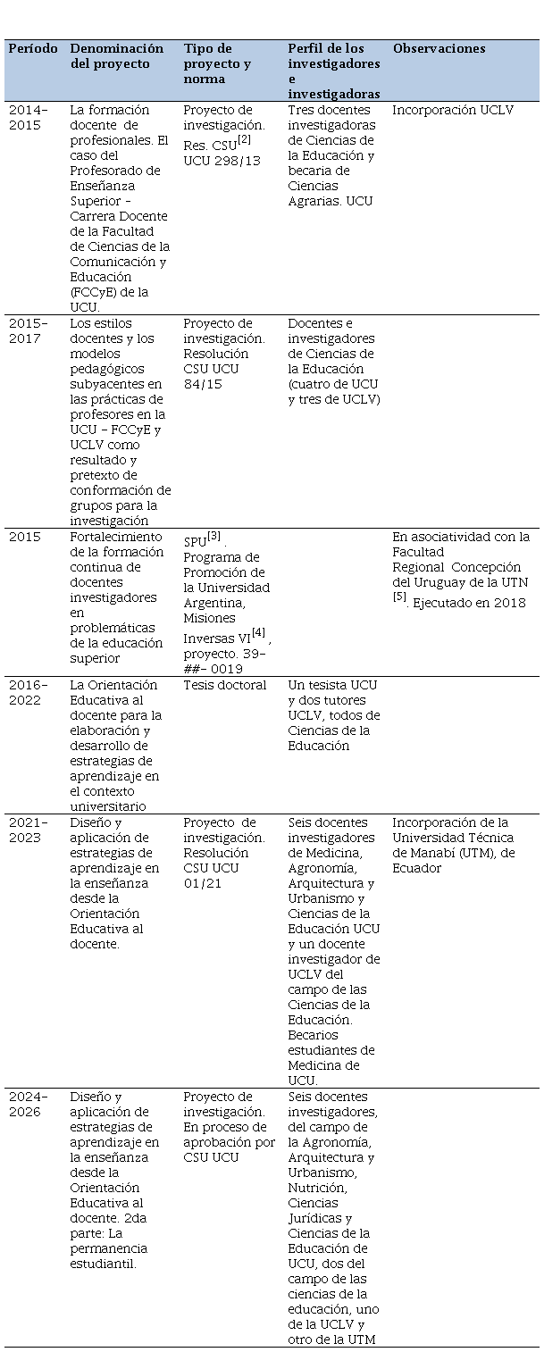 Así, la “cercanía de motivos” para la constitución de equipos de trabajo que ha reunido a personas de diferentes universidades en el período descrito en este texto ha sido, justamente, la investigación sobre la formación docente (inicial y permanente) para el ejercicio en la universidad.