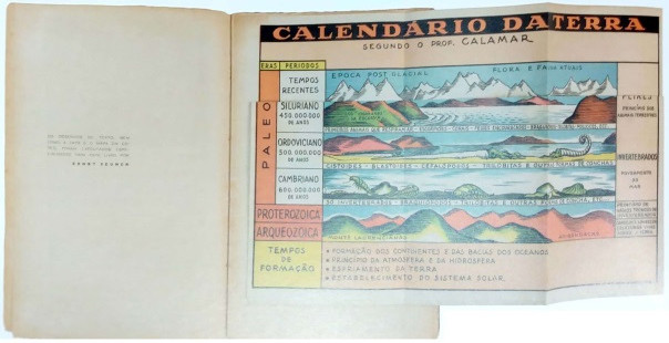 Como um exemplo de paratexto,14 o livro Viagem à aurora do mundo apresenta o “Calendário da Terra”, em página desdobrável, apresentando, didaticamente, os períodos e seres que habitaram o planeta (Fig. 9).