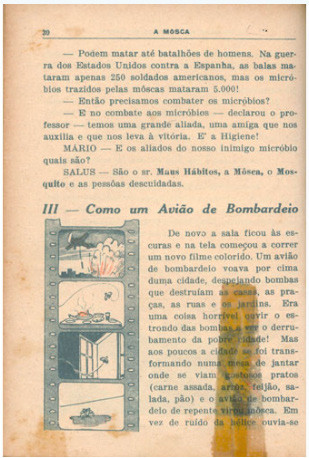 De acordo com Veríssimo, se a escola era um poderoso aliado na formação de indivíduos sãos, com bons hábitos cívicos e de higiene, a leitura não ficaria em segundo plano. Desse modo, Aventuras no mundo da higiene evidencia o comprometimento do autor com um discurso de higienização pessoal e social, assumido como meio para a “salvação” e o progresso do país.