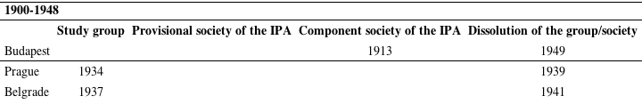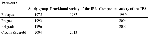 We are still far from being able to provide a full (let alone complex) picture of what happened between the 1970s and the 1990s in the ex-Soviet Bloc countries while psychoanalysis operated underground or on a semi-underground basis. But we already know a great deal about which forces supported or hampered the reestablishment of psychoanalytic groups amidst the anti-psychoanalytic political climate of specific countries. In Budapest, for example, the study group that embodied revival was founded approximately two decades ahead of those in Prague or Belgrade, but it took twice as long for Budapest to achieve full membership status in the IPA as it did for Belgrade or Prague (see Table 1 and 2).