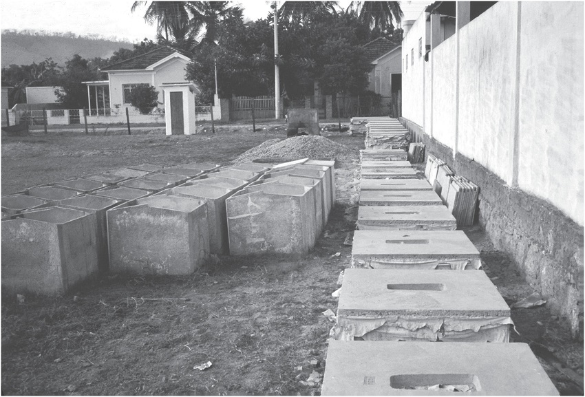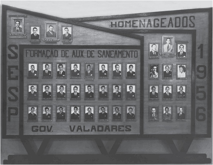 Os profissionais que compunham as equipes se dividiam entre auxiliar de saneamento, que podia ser recrutado e treinado na própria localidade servida pela US, bastando ter instrução básica e aptidões manuais para lidar com confecção de banheiros e construção de privadas/latrinas. Tais auxiliares recebiam aulas teóricas e estágios práticos, e, dependendo da sua capacidade e aprimoramento nos estudos, eram promovidos a inspetores de saneamento e assumiam atividades de liderança. A tais inspetores era oferecido um período de estudos de um ano na Faculdade de Higiene e Saúde Pública de São Paulo. Por fim, havia o cargo de engenheiro sanitarista, recrutado entre engenheiros civis, que passavam por estágio de um a dois meses sob orientação de um profissional mais antigo. A tais engenheiros também era oferecido uma bolsa de estudos na mesma faculdade paulista (Cynamon, 1959). Recordamos que Cynamon fez semelhante estágio antes de ser efetivado no Sesp, em 1952. Em pouco tempo, ele próprio estaria na função de professor e coordenador de saneamento em Governador Valadares, instruindo os engenheiros a realizar as tarefas de opinar sobre planos de trabalho, supervisionar atividades, avaliar resultados e servir de consultor em assuntos de saneamento para unidades sanitárias locais.