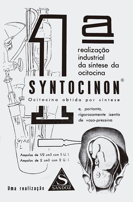 De início, a ocitocina fabricada pela empresa suíça parece ter tido maior alcance no Brasil. Nos artigos analisados, a maioria dos autores diz ter utilizado ou faz referência ao medicamento Syntocinon, e não ao Pitocin. Há também autores que agradecem expressamente à Sandoz pelo envio de amostras do Syntocinon, indicando a criação de uma rede entre ginecologistas e indústria farmacêutica no Brasil visando à disseminação do produto e ampliação de seu consumo. Além disso, a Sandoz contava também com bastante propaganda, tanto na Revista de Ginecologia d’Obstetrícia quanto nos Anais Brasileiros de Ginecologia, de outros produtos da empresa vendidos no Brasil.