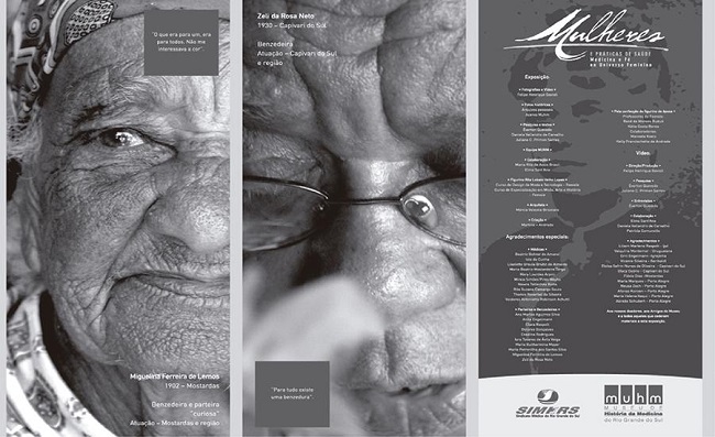 “Mulheres e práticas de saúde” tem como tema central a homenagem às mulheres por meio de relatos de vida de médicas, parteiras e benzedeiras em suas trajetórias no cuidado à saúde. Após sua exibição na sede do Muhm, tornou-se uma exposição itinerante e já foi exibida em vários pontos da cidade de Porto Alegre e em inúmeras cidades do interior do estado. O principal recurso metodológico da montagem são as entrevistas com médicas, parteiras e benzedeiras, na perspectiva da história oral, visando à coleta de suas narrativas de vida sobre os cuidados no campo da saúde. Dessas narrativas, dois vídeo-documentários foram realizados: Vida e Fé, sobre parteiras e benzedeiras, respectivamente, e podem ser vistos pelo público em um painel virtual.