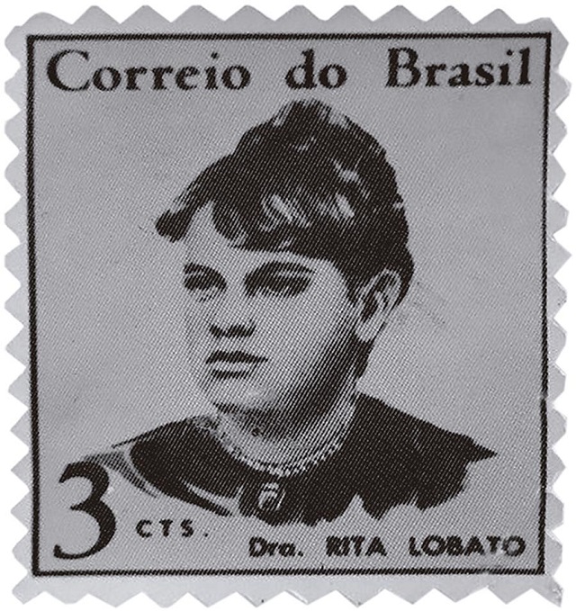 As três primeiras médicas a se formarem em faculdades brasileiras após 1879 são gaúchas e, por esse motivo, mencionadas na exposição “Mulheres e práticas de saúde”. Rita Lobato, que tem um item expositivo dedicado a ela, é considerada a primeira médica diplomada no Brasil e a mais estudada até hoje. Tendo iniciado seus estudos na Faculdade de Medicina do Rio de Janeiro, posteriormente se mudou com a família para Salvador, Bahia, formando-se pela Faculdade de Medicina da Bahia, em 1887. Na ocasião de sua formatura, os Correios do Brasil lançaram um selo em sua homenagem (Figura 8), objeto que faz parte do arquivo pessoal da médica no acervo do Muhm.