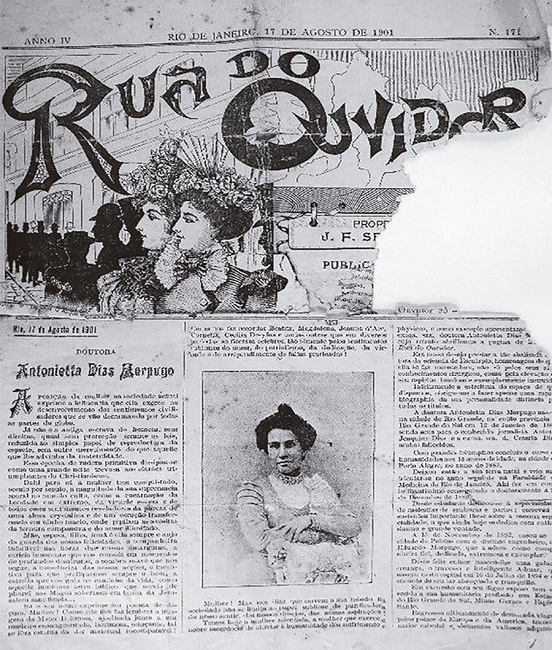 Antonieta César Dias, formada pela Faculdade de Medicina do Rio de Janeiro, em 1889, recebeu reportagem de capa do Jornal Rua do Ouvidor, em 1901. Apesar de não fazer parte da exposição “Mulheres e práticas de saúde”, o exemplar que pertenceu à médica foi doado pela família e encontra-se no acervo do Muhm (Figura 9).