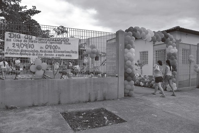 Adherence to the ideology of demedicalized physiological birth, the absence of doctors on the premises, and support for birthing women is shared by all birthing houses. What makes CPDCF unique is that it is run by the Brazilian Unified Health System (Sistema Único de Saúde, SUS). Its services are free of charge and its users are mainly women from lower social classes. CPDCF’s personnel are very careful to present the clinic as a “community service.” They draw on elements of Brazilian popular culture, from warm colors on the walls and decorations to the sharing of food among patients and the presentation of CPDCF as a quasi-family enterprise that is well integrated into the larger community. Another important trait is the center’s modest size (Romar, 26 Mar. 2014). When the women go for their prenatal tests (which must be done at CPDCF if they wish to give birth there), they meet the staff members who will be present during childbirth (Caixeiro-Brandao, Projianti, 2011; Pereria et al., 2012).