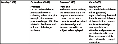 We opted to utilize the term “formative” as used by Screven (1990) and Cury (2005), who describe this step as taking place during the early phases of exhibition design development, with an examination of expographic resources using prototypes and simulations.