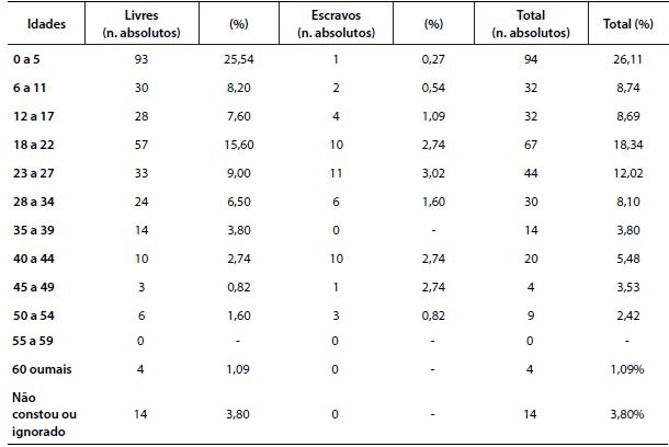 Não tivemos acesso ao número de crianças vacinadas durante o período imediatamente anterior à epidemia. Mas se os escravos estiveram entre o público que mais recebera a lanceta, como defendeu Fernandes, talvez as crianças em situação de cativeiro estivessem imunizadas no momento da eclosão da epidemia, o que não ocorrera com os pequenos livres. O grupo etário com maior incidência de mortes entre os escravos foi justamente aquele em que os sujeitos se encontravam no auge de sua força física, entre os 18 e os 27 anos; um indicativo da ausência de vacinação entre esses grupos.