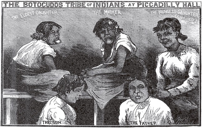 The question of where the Botocudos were going shows that those who intervened in public debates were aware that the international exhibitionary complex offered a variety of modes of display, all of which implied different frames of seeing. World fairs allowed for comprehensive assemblages and panoptic vistas meant to permit comparison of “specimens,” whether these were technical devices, pieces of art, agricultural produce or humans (Benedict, 1991; Qureshi, 2011; Geppert, 2002). Displays of groups or individuals organized by impresarios like the Baratas were set in different contexts (for instance zoos, native villages, or freak shows), all of which contained different claims to authenticity and appealed to different specters of the public (Bruckner, 2003).
