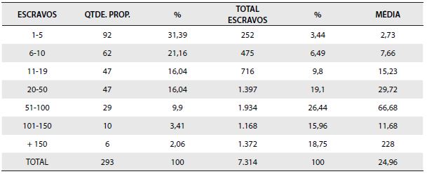 De 1855 a 1870, houve expansão na concentração da mão de obra cativa entre grandes proprietários, em comparação ao período anterior. O grupo de proprietários possuidores de 20 a 50 cativos totalizava 47 fazendeiros e correspondia a 16,04% do total de inventários, e a 19,01% do total de escravos. Para aqueles com plantéis superiores a 50 escravos, observou-se um universo de 45 proprietários, ou seja, 15,37% do total. Esse grupo possuía a quantidade de 4.474 cativos, correspondendo a 61,15% do total. Considerando a soma dos médios e grandes proprietários (entre 20 e mais de 150 escravos), ocorreu um avanço de 77,32% dos cativos nas mãos desse grupo no período de 1830-1854 para 80,16% no período de 1855-1870 ( Vittoretto, 2012).