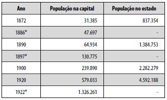Para reforçar essa relação, vale lembrar a explosão demográfica que no período indica novo nível de preocupação com o espaço urbano. Esse é um dos aspectos que se encontra já há tempos tematizado pela historiografia, a partir da inserção do país nas promessas de modernização da nação brasileira ( Love, 1982 ). Com a nova configuração social pós-abolição, em meio à política imigratória realizada para a substituição da mão de obra escrava, e com a execução de uma política de gestão social das “classes perigosas”, vê-se que a expansão urbana de inícios do século XX ( Tabela 1 ), seria um tema que também impactaria a assistência hospitalar.