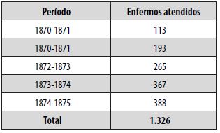Com o fim de comparação, a seguir está indicado o Movimento de Enfermos ( Tabela 5 ) publicado no primeiro Relatório da misericórdia paulista, em 1875, referente aos cinco anos anteriores. A Tabela 6 apresenta um resumo de dados esparsos referentes a diferentes santas casas do interior do estado, com a finalidade de indicar as mudanças na quantidade de pacientes atendidos no decorrer do período abrangido.