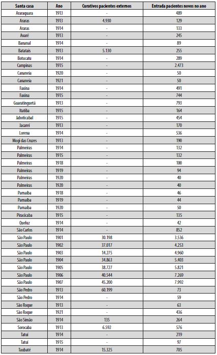 Como vimos até aqui, a organização financeira das santas casas distribuídas pelo estado de São Paulo foi alterada entre o Império e a República, tanto no que se refere à constituição do patrimônio das santas casas – que em seus primórdios era formado por diferentes doações, entre esmolas e recebimento em espécie, tais como na forma de sacas de café, em animais ou em bens – quanto no número de pacientes e na ampliação da complexidade dos atendimentos.